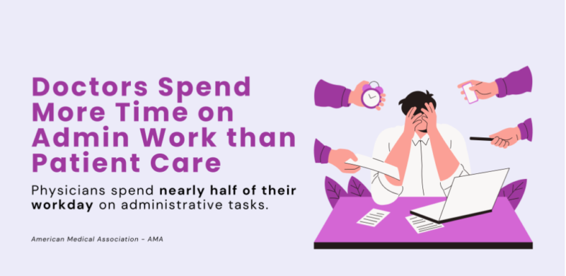 According to a report by the American Medical Association (AMA), doctors spend nearly half their workday on administrative tasks rather than patient care. Now, while documentation, scheduling, and billing tasks are necessary, they’re also time-consuming. And with the rise of telemedicine, a doctor’s workload is growing in both volume and complexity. The rise of telemedicine and electronic health records (EHRs) has also added more complexity to a physician’s workload.